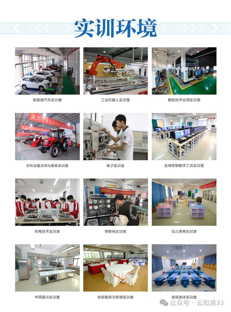 硬件设施:校舍及辅助建筑面积超20万平方米;校内实训场室150+间,校外实训基地40+个,实训设备总值约1.17亿元,形成“一校一园一基地”格局。