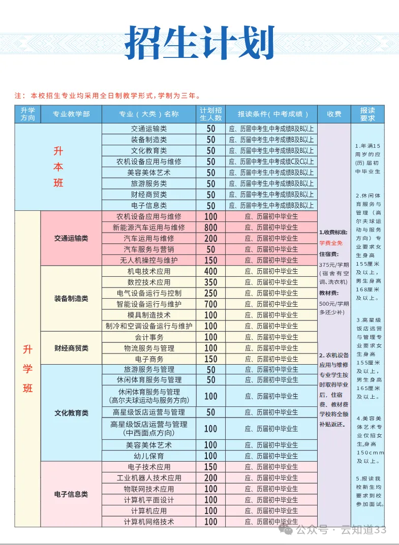 成绩:农机设备应用与维修(升本班)要求中考成绩C及以上;其他专业无明确分数要求,择优录取。