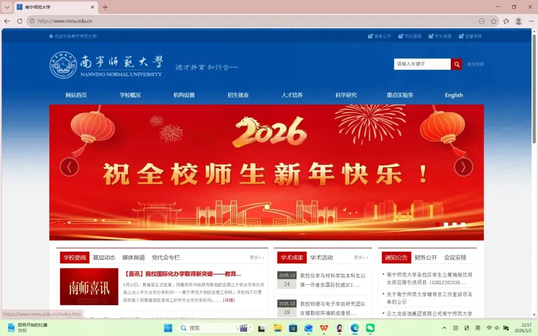 Step1:登陆南宁师范大学官网(nnnu.edu.cn)