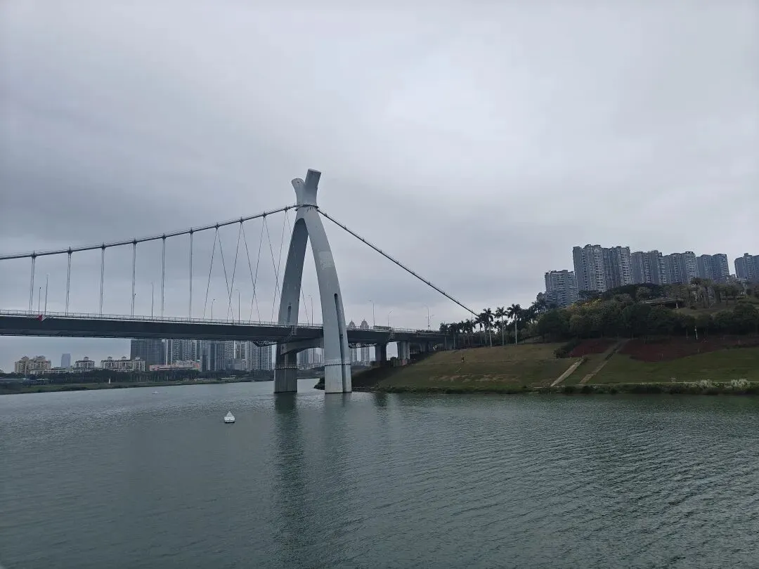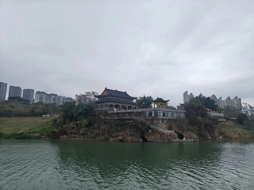 预报中的雨并没有下,我在三层的露天甲板上吹着风,有点昏昏欲睡,邕江两岸风景美如画,只是有点阴沉的天气影响了拍照的效果,一座一座的造型各异的跨邕江大桥从头顶掠过,75分钟的船程很快就过去了。