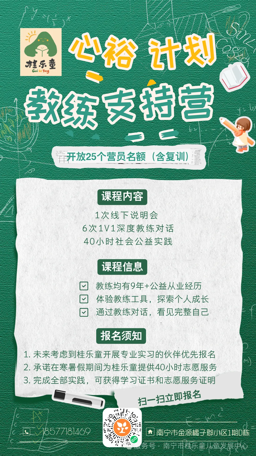 你可以自由选择寒暑假方便的时间,在资深公益老师的陪伴下,前往我们服务的社区完成不少于40小时的志愿服务,所有时长都会记录进「桂志愿服务」系统,边做公益边涨经验。