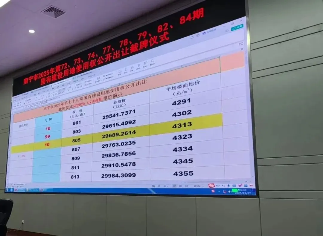 2025年12月27日,南宁上演了一场土拍大战。