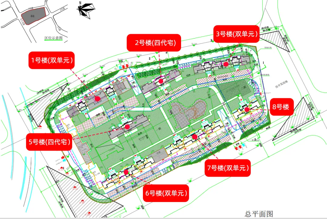 从公示的总平面图来看,这两栋楼的位置较为优越,2号楼南面是小区的主景观中心,预计打造一个下沉庭院。还享有较大的楼间距,视野非常好。