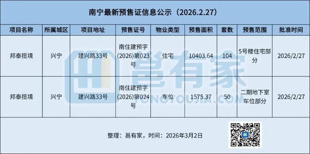 【首发】南宁最新预售证公示3.2