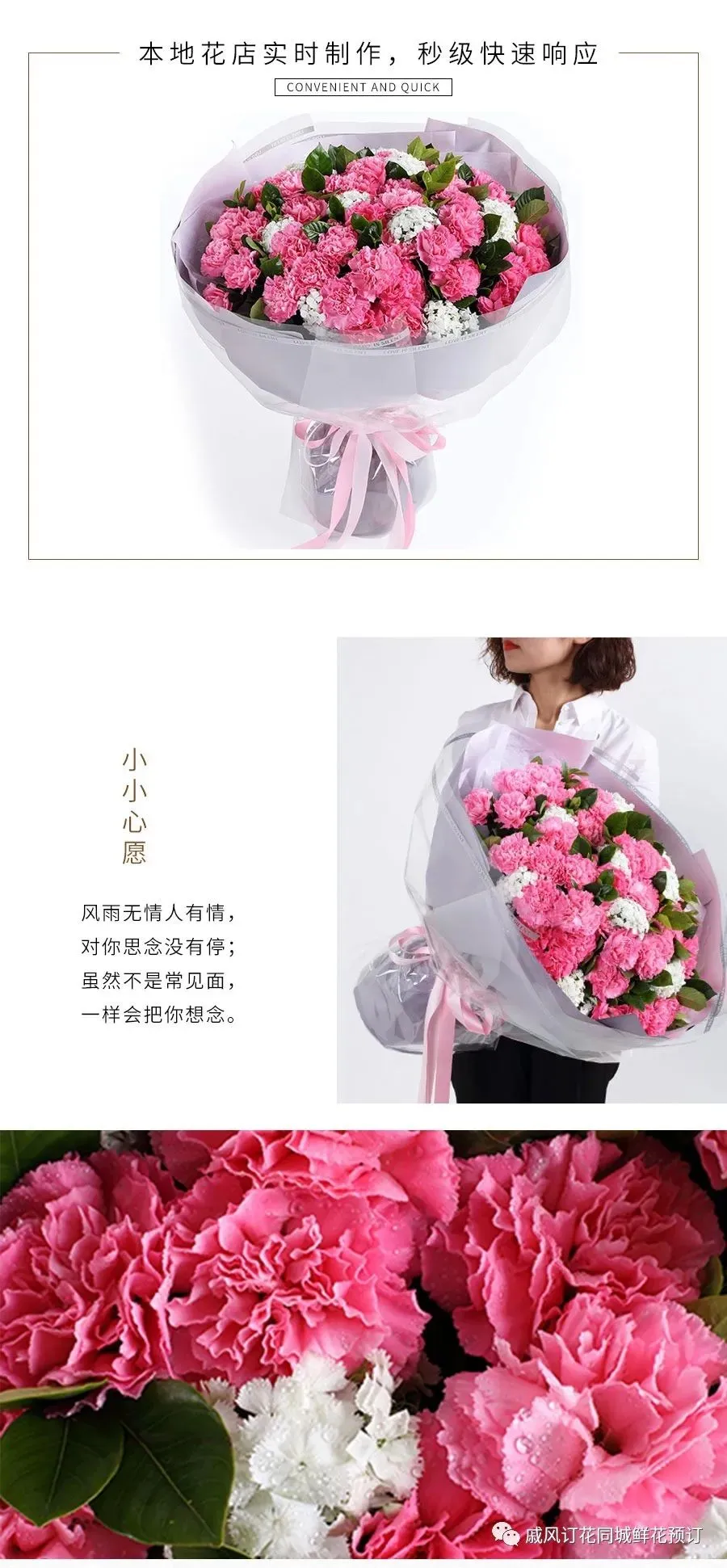【鲜花预订】—— 提前规划,让爱如约而至。我们提供便捷的在线预订服务,无论是生日惊喜、纪念日庆祝,还是简单的日常小确幸,只需轻点鼠标或滑动屏幕,就能将这份心意跨越时空,准时送达对方手中。更有定制服务,根据您的需求,打造专属于你们的浪漫记忆。