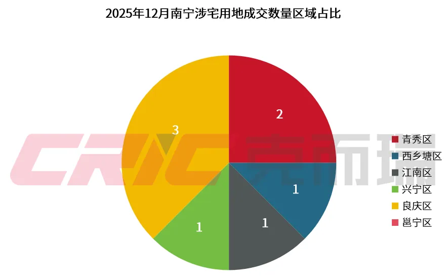2025 年 12 月的南宁土拍,在区域成交层面呈现出鲜明的差异化特征,青秀区作为传统核心城区,稳坐价值 C 位,成为土地市场的 “供货一哥” 与价值高地;西乡塘、江南、兴宁、良庆四区依托城市更新的浪潮,崛起为土地市场的 “中坚力量”,成为成交的核心区域;而邕宁区则陷入 “颗粒无收” 的困境,全年无住宅用地成交,与其他区域形成鲜明对比。这种区域成交格局的形成,与南宁的城市发展规划、区域资源禀赋、城市更新进度深度绑定,也预示着南宁城市发展的区域分化正在进一步加剧。