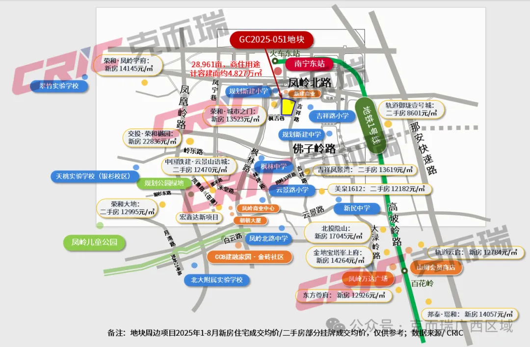 在2025 年 12 月的南宁土拍中,绝大多数地块均以底价或低溢价率成交,市场整体呈现出冷静的氛围,而荣和集团的出手,成为这场土拍中最耀眼的亮点。作为南宁本土的龙头房企,荣和集团逆势发力,以 3.11 亿元的总价成功摘得青秀区凤岭北一幅约 29 亩的优质住宅用地,楼面价高达 6450 元 /㎡,成为当月乃至全年楼面价最高的地块之一,其拿地行为在一片冷静的市场中显得格外引人注目,被业内称为 “孤勇者” 的出击。