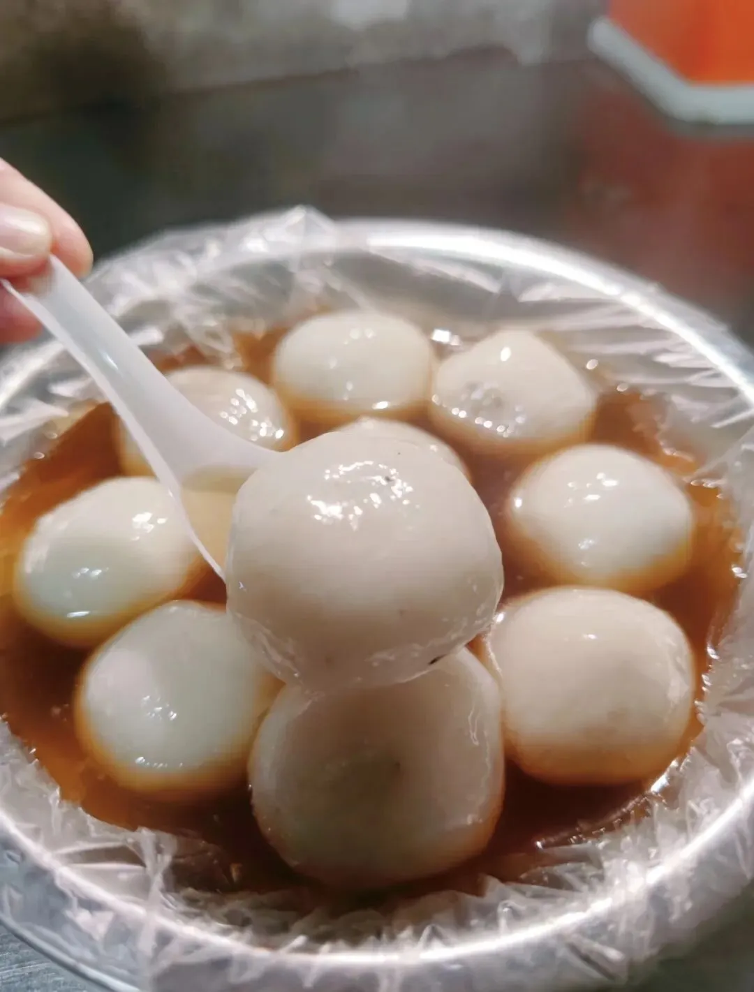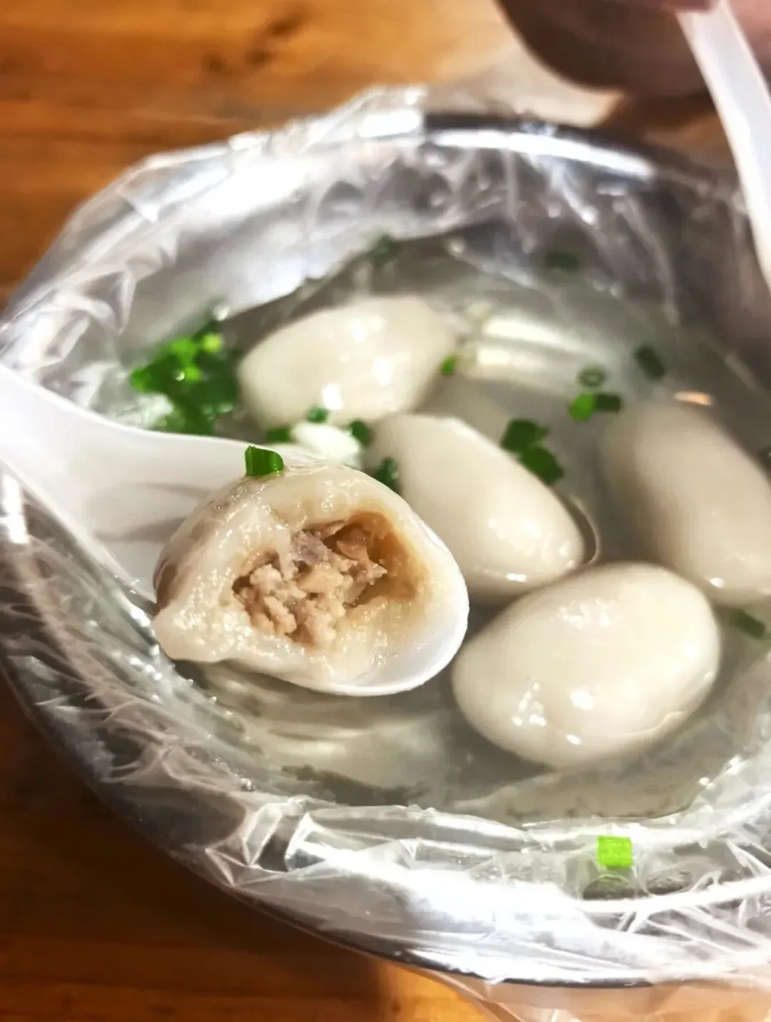 这家白天是小笼包店,晚上8点后才是咸汤圆的主场,看到周围好多街坊都来吃。就知道来对了。