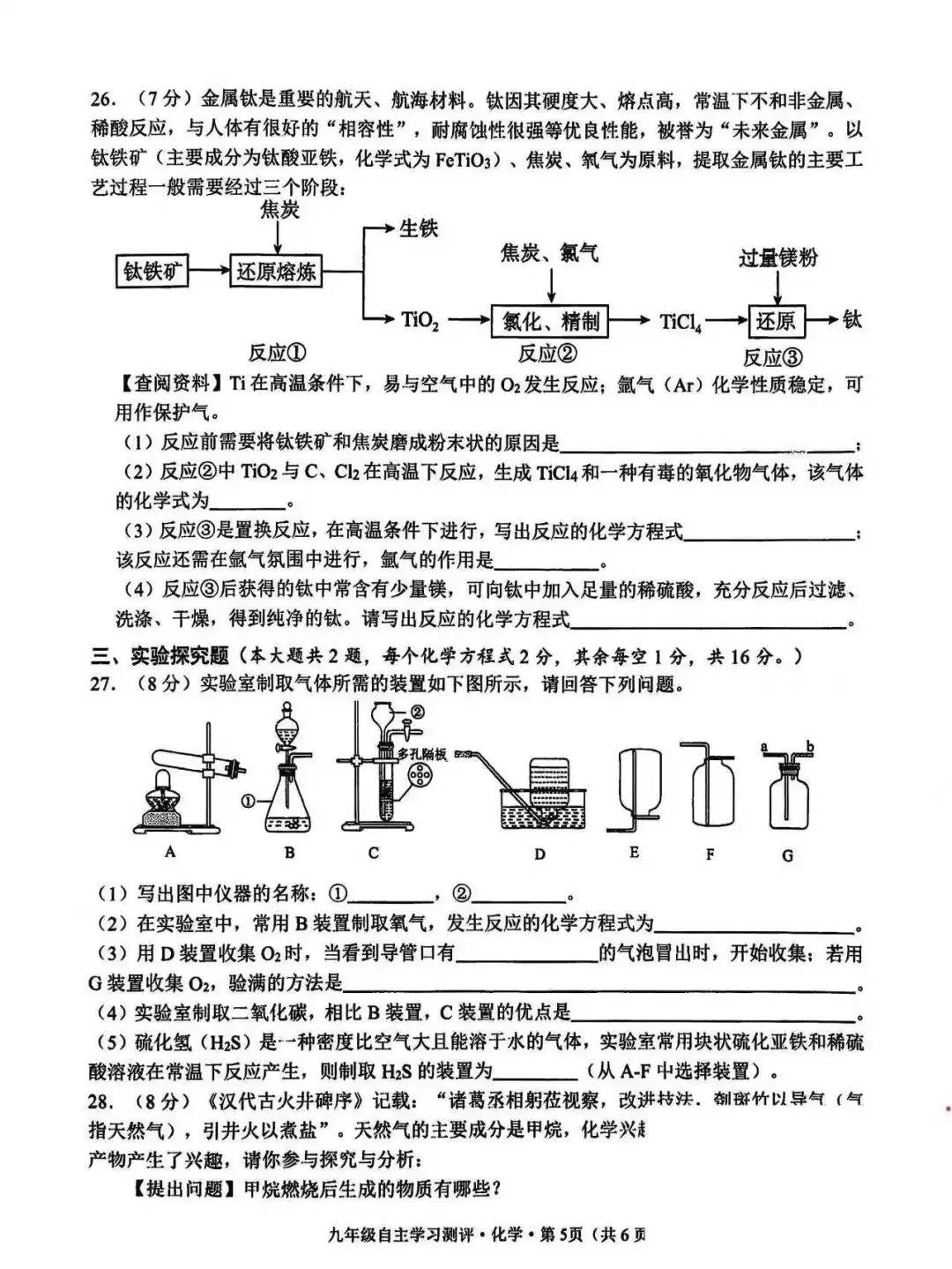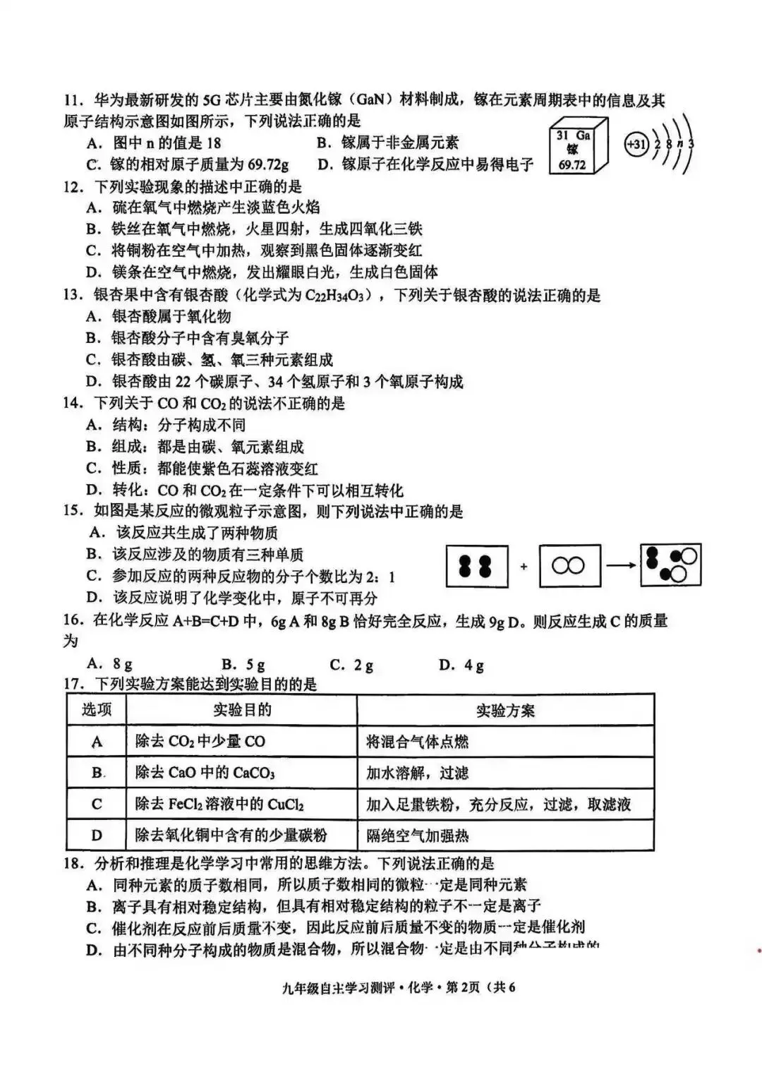 南宁14中九年级开学考化学