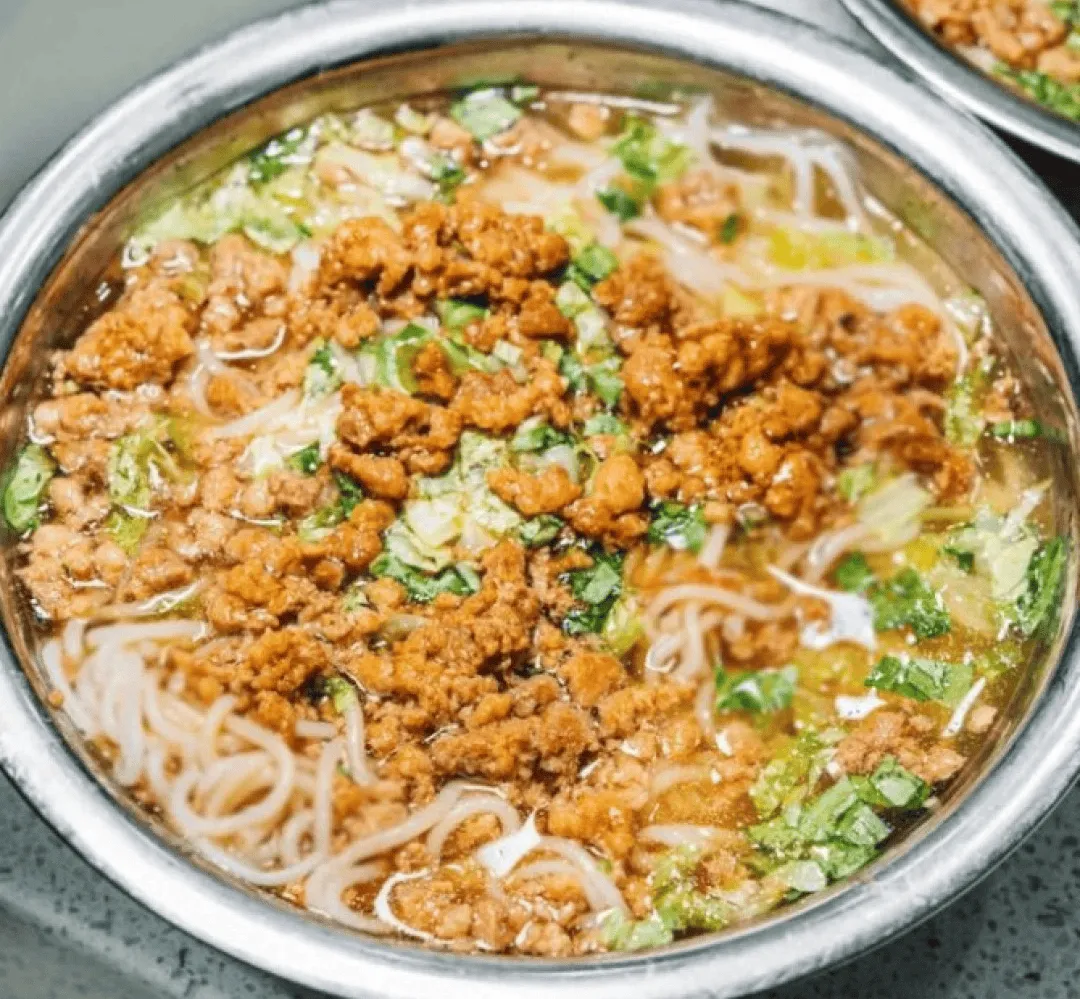 天边刚泛鱼肚白,老铺阿婆就支起杉木榨器,将发酵好的粉团压成银丝,跃入沸水。片刻捞出,淋上慢熬的骨汤,配上碎猪肉、紫苏、酸笋和手工酱油膏,酸香瞬间满溢。