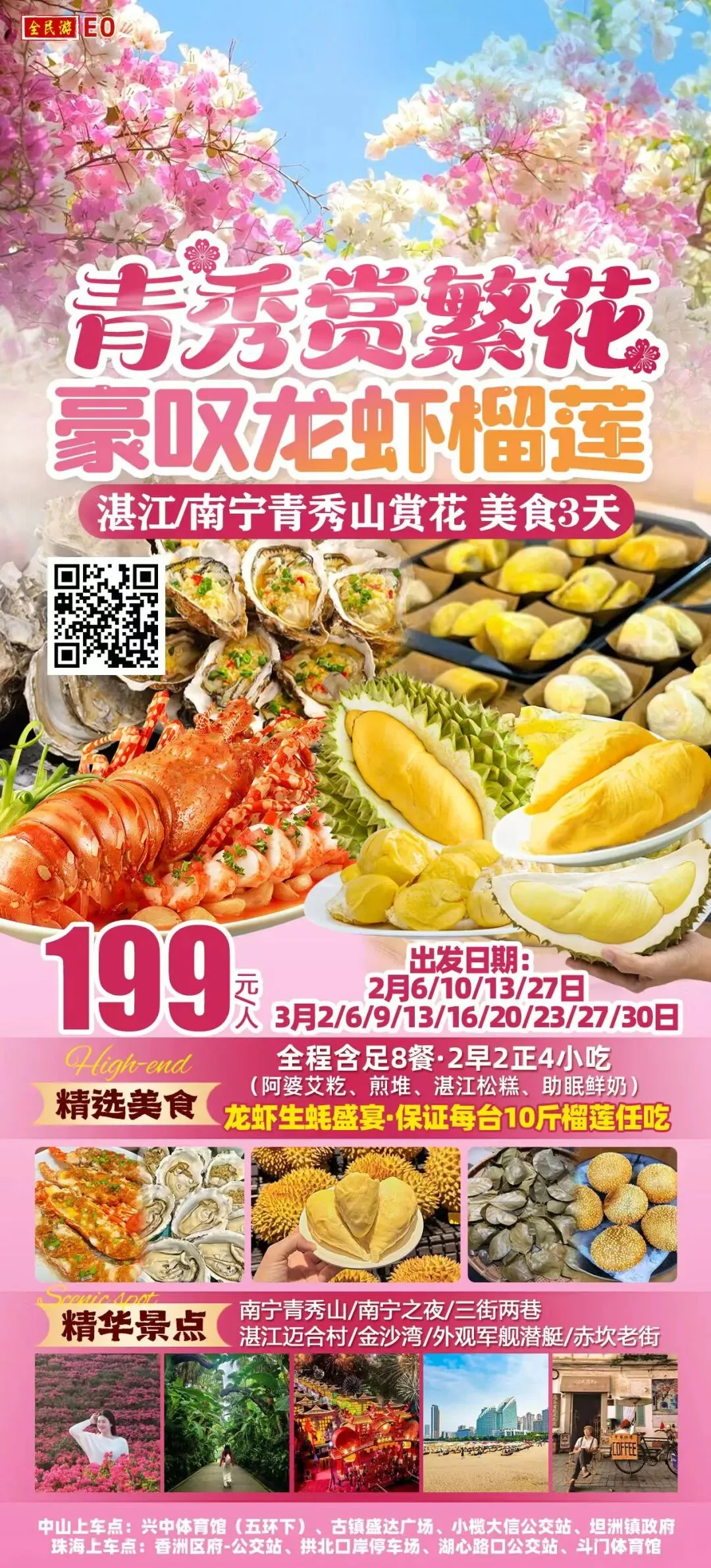 青秀赏繁花·南宁+湛江联游美食3天 仅199元