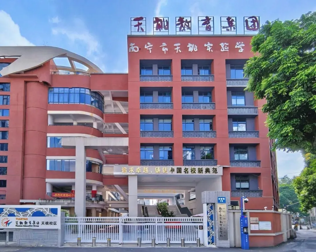 南宁市天桃实验学校始建于1956年,1991年被教育部列为中国名校,2024年8月成为一校两部七址规模的天桃实验学校教育集团。历经近70年砥砺发展,学校现已壮大为广西规模最大的九年义务教育学校,现有东葛校区、天桃校区、银杉校区、嘉和城校区、翠竹校区、明月校区、青运校区共七个校区。学校秉承“为党育人,为国育才”的办学宗旨,遵循“厚德虚怀,励志图精”的校风教风学风,认真贯彻执行国家教育方针,已逐渐发展成为办学理念先进、条件优越、师资雄厚、与时俱进的全国一流名校。