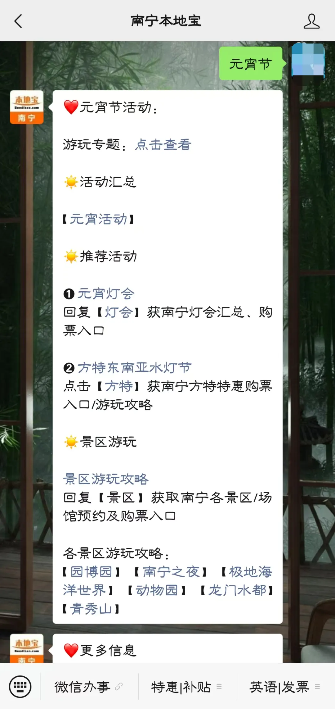 回复【元宵】获南宁元宵活动汇总/游玩推荐