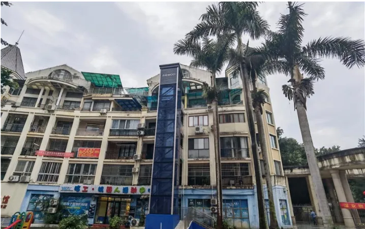 嘉宾社区公务员小区加装电梯前后对比图。