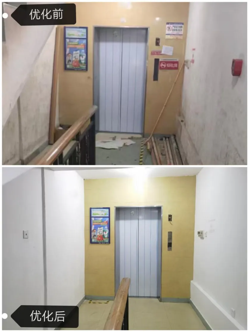 凤翔社区香榭里小区电梯旧改前后对比图。