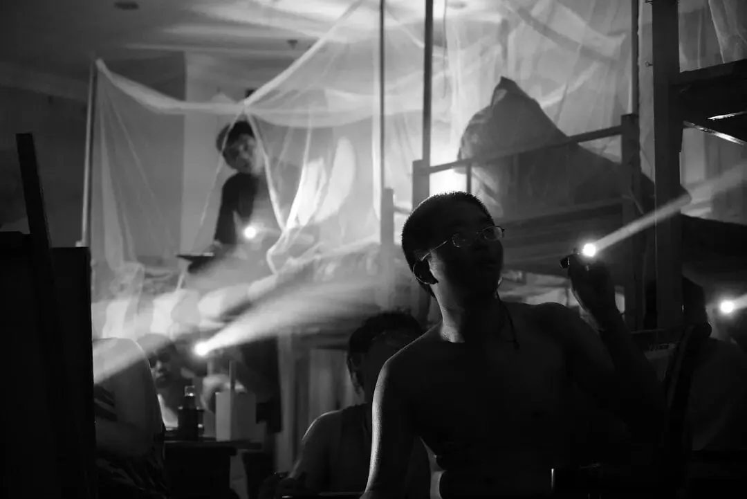 不同于同类题材多发生在校园里,《鬣狗》将校园霸凌的情境设置在荒野孤堡的美术集训班上。全片由胶片拍摄,黑白片呈现,配合第一位主人公的低沉旁白,在开篇就塑造起压抑的基调。