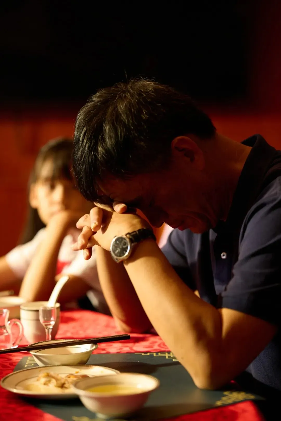 就在因压抑而要呼吸不过来的时刻,宴会餐桌下的超现实空间给了主人公以及观众喘息。父女陆续躲进被红色桌布包裹遮盖的餐桌下,意识上短暂逃离了寿宴上的是非闹剧。在这个空间,我看到父女都成为了脆弱无法健康成长的可怜幼小个体。导演用这一灵光而动人的设计,反映了现实中许多人在家庭中的真实心境。