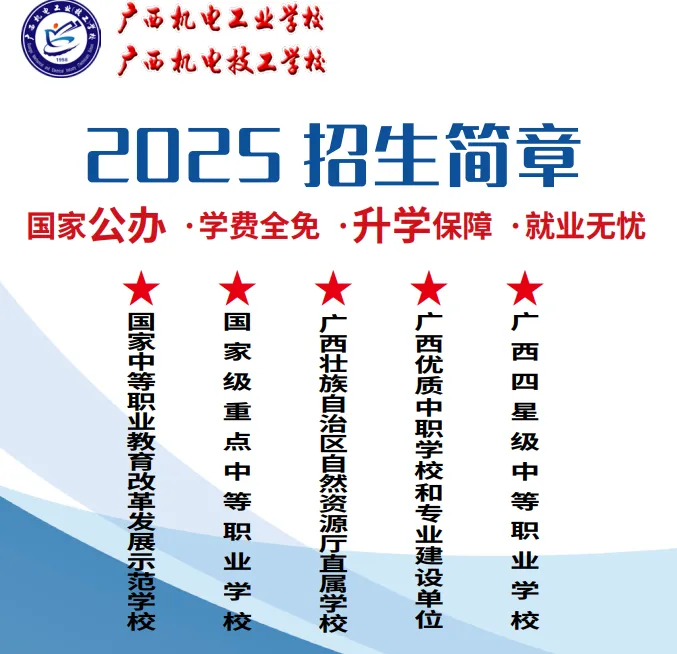 广西机电工业学校学校办学理念先进,教学设备完善,师资力量雄厚,注重学生职业素养和技能培训,办学成绩突出,毕业生素质高。近年来,毕业生初次就业率超98%,用人单位满意率达95%,毕业生供不应求。招生办周老师:191 7771 8919(手机/微信)