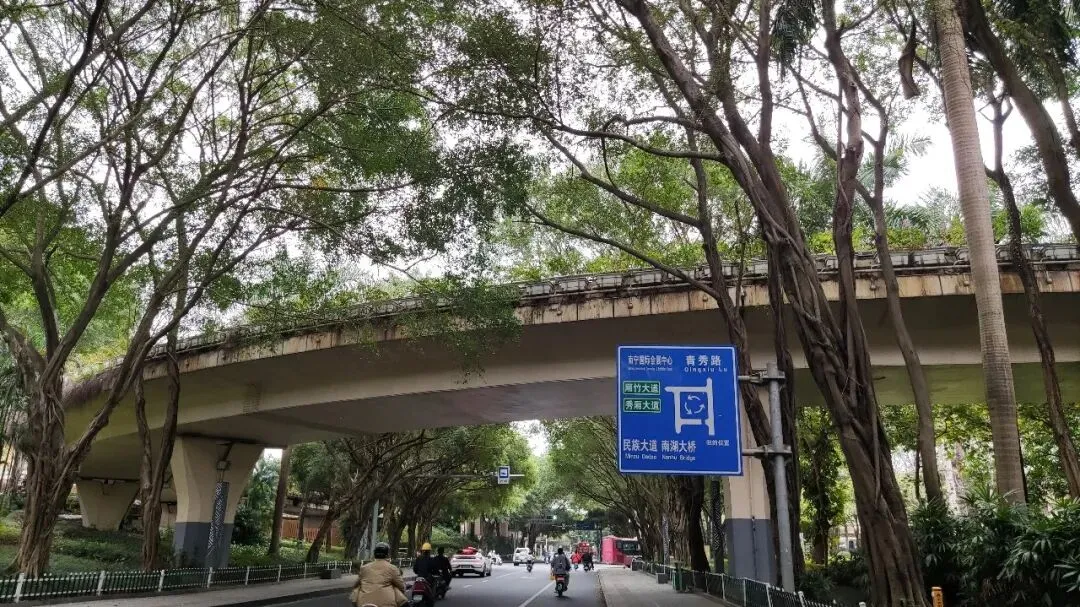 ▲荔园大道种植垂叶榕,因树木茂密被誉为南宁版“绿野仙踪”。
