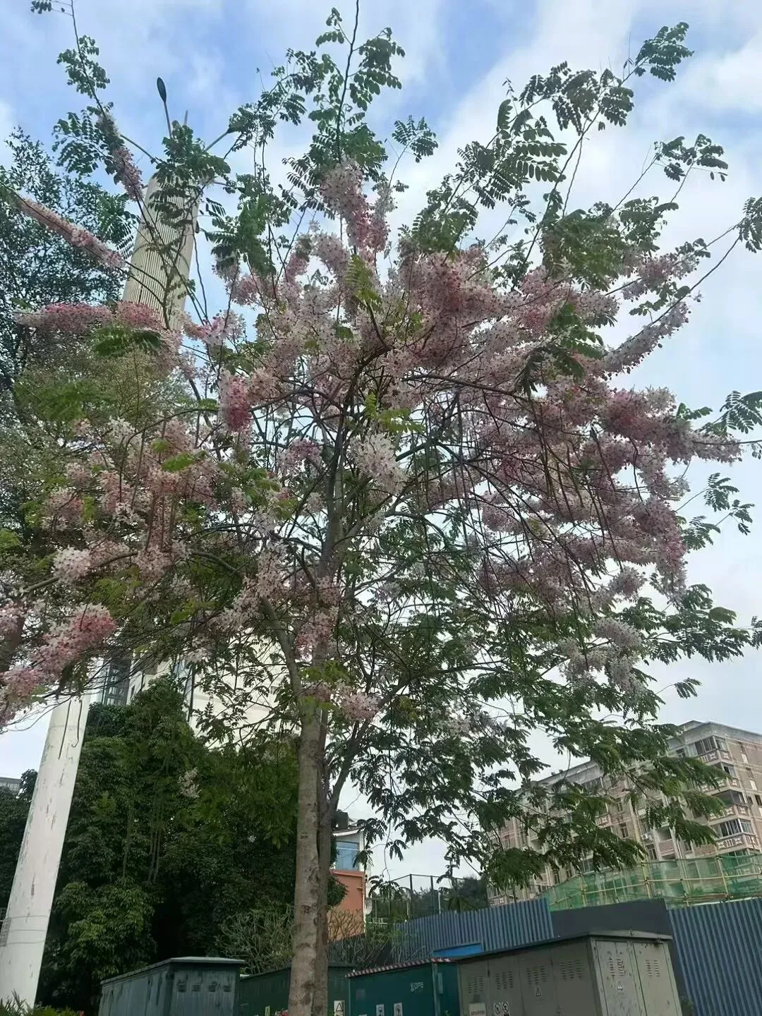 他拍照发到朋友圈引发讨论,后来才知道这棵植物叫“泰国樱花”。