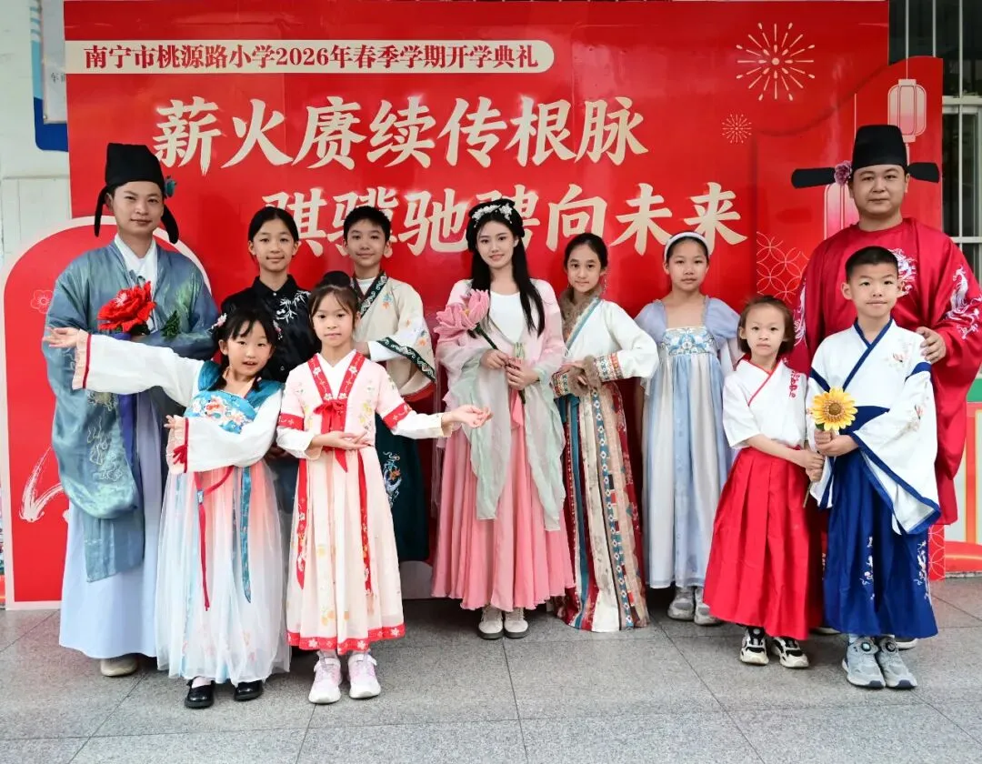 此次开学典礼,既是一场充满仪式感的开学序曲,更是一堂生动的爱国主义教育和传统文化教育课。南宁市桃源路小学以此为契机,将传承中华文脉、铸牢中华民族共同体意识融入校园教育的点滴,引导全体学生以龙马精神昂扬奋进,以凌云之志逐梦前行。