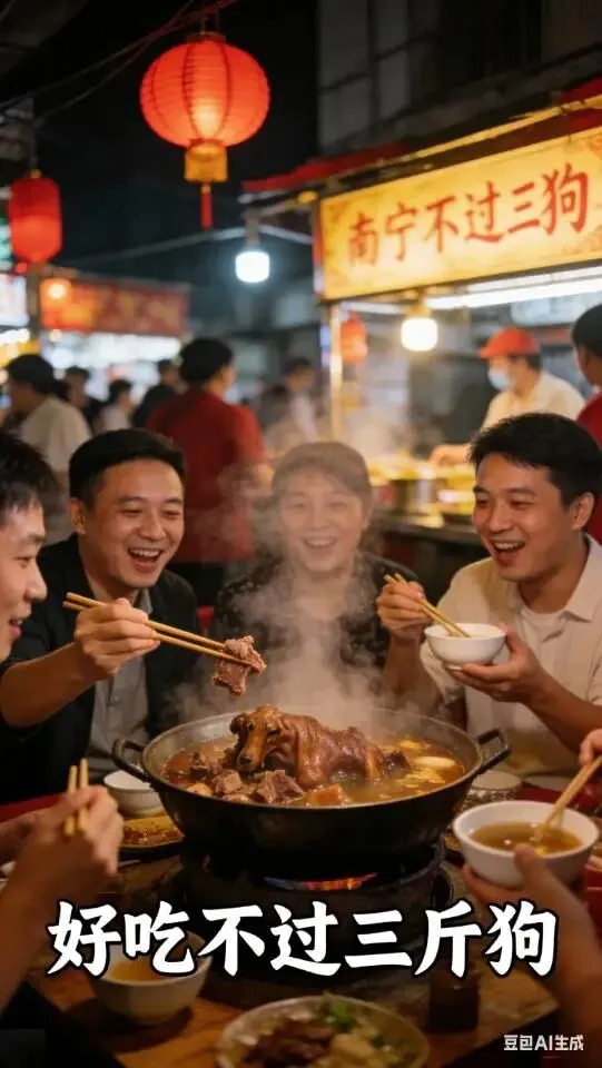 好 味飘香满巷头,吃 遍邕城意未休。不 恋山珍与海味,过 往皆夸此味优。三 巡细品鲜醇在,斤 两足称客自留,狗 肉飘香醉九州。 好 景如画映城楼,走 遍天涯恋此州。不 惧风尘千里路,过 眼繁华眼底收。南 国绿城风光秀,宁 和岁月乐无忧,街 巷温情暖心头。