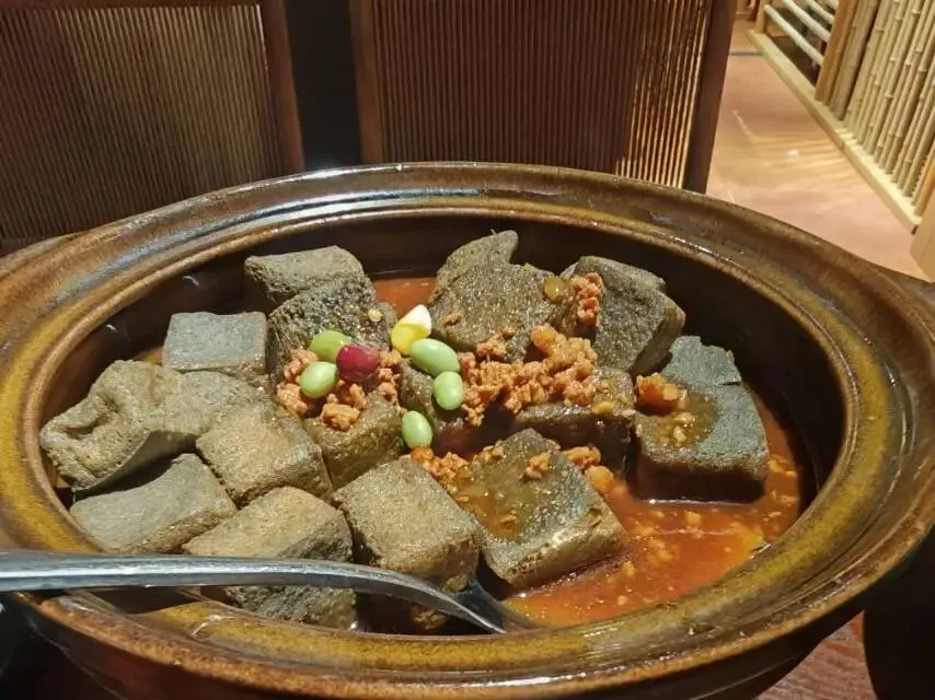 第一顿,先吃了很多人推荐的柠檬鸭【评价如下】环境:环境挺好的,比较有特色服务:服务方面挺好的,门口排位的美女和点菜的经理都很热情,服务员也是有呼有回应,就是上菜有些慢。味道:口味很不错,柠檬鸭(选的白鸭,经理说吃起来没那么韧)酸酸的,带点微辣,吃起来很下饭,也很上头,有点停不下来,就是感觉太多油了。豆腐很嫩滑很入味,吃起来很好吃;那个风味饺,之前在别的地方吃过,但是还是这里的好吃,搭上他们的酱料,有点酸有点咸,很适合我口味,至于百香果排骨中规中矩,不算太惊艳,但是份量太小了,59的价格,就几块,性价比略低。还有就是送的奶茶,说是他们自己做的六堡奶茶,没想到比外面很多奶茶店做的好喝,我现在很少喝奶茶和饮料的,喝这个也觉得好喝,淡淡的,不腻,很顺滑,还很解腻。总的来说,环境比较好,服务也不错,味道也挺好,但是整体份量偏小,上菜偏慢,不过这不影响整体评价,值得刚到的朋友试一下。