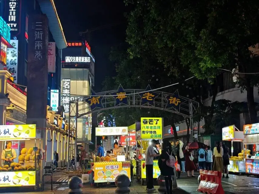 2月28日下午1点左右从深圳出发,乘坐高铁前往南宁,4个小时后便到达南宁东站,办理完酒店入住,稍作休息,晚上7点左右,刚好入夜,坐地铁前往朝阳广场附近,闲逛三街两巷,时间刚刚好。酒店住在朝阳广场附近,交通便利,出行方便(错峰出行,酒店性价比更高)