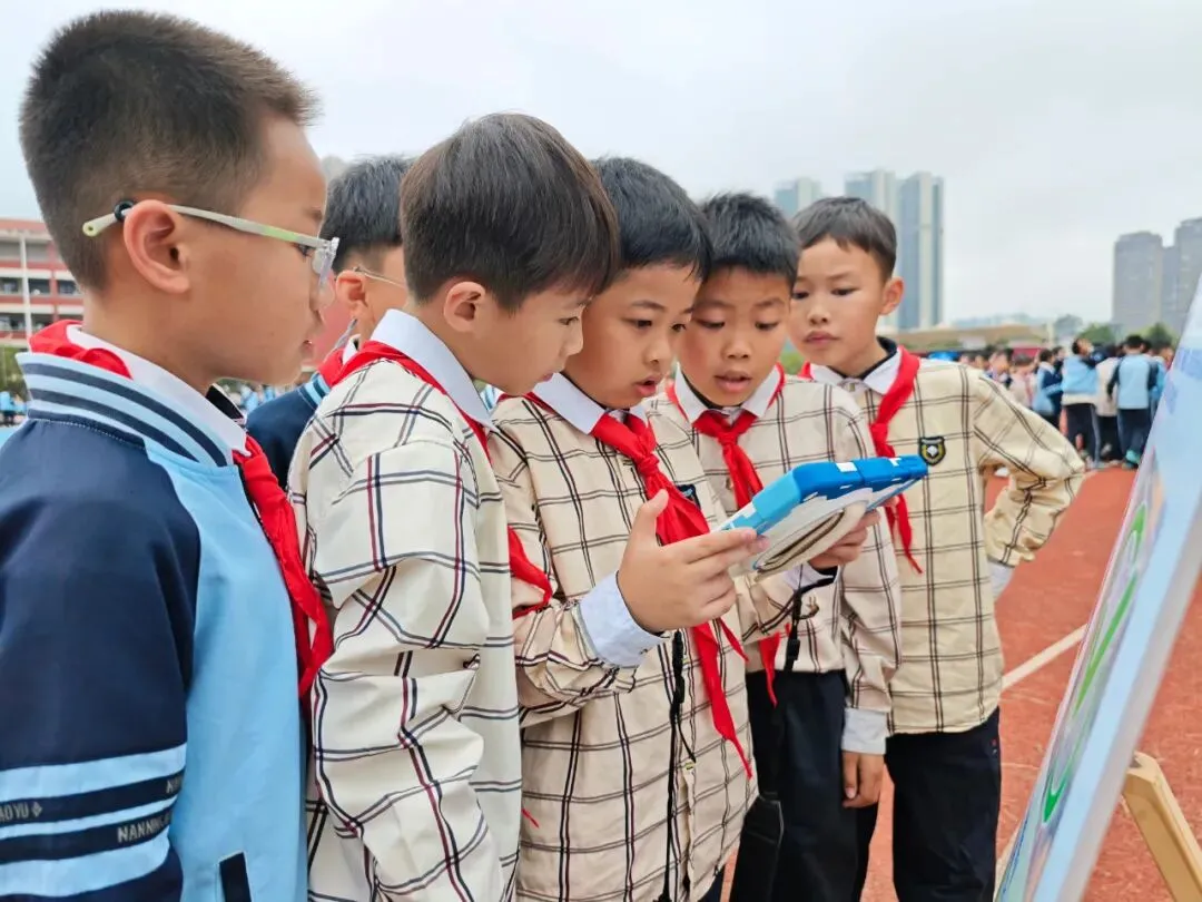 依托“星动践行”策略,活动紧扣差异教育理念,设置八大科技体验区,分年级开展沉浸式实践。低年级在趣味操作中触摸科技魅力,开启“启星”之旅;中、高年级在闯关答题、团队协作中攻克难题,践行“摘星”精神,让追星课程从榜样认知走向实践体悟,真正实现“差异追光,人人成长”。