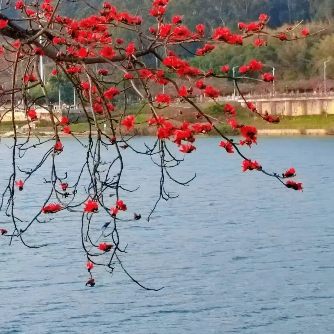 火红的木棉花盛开如云霞。