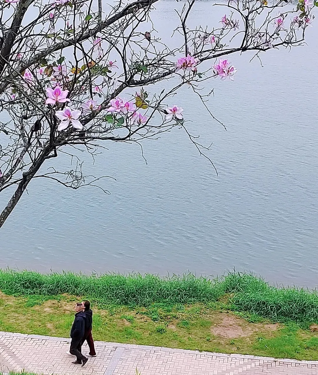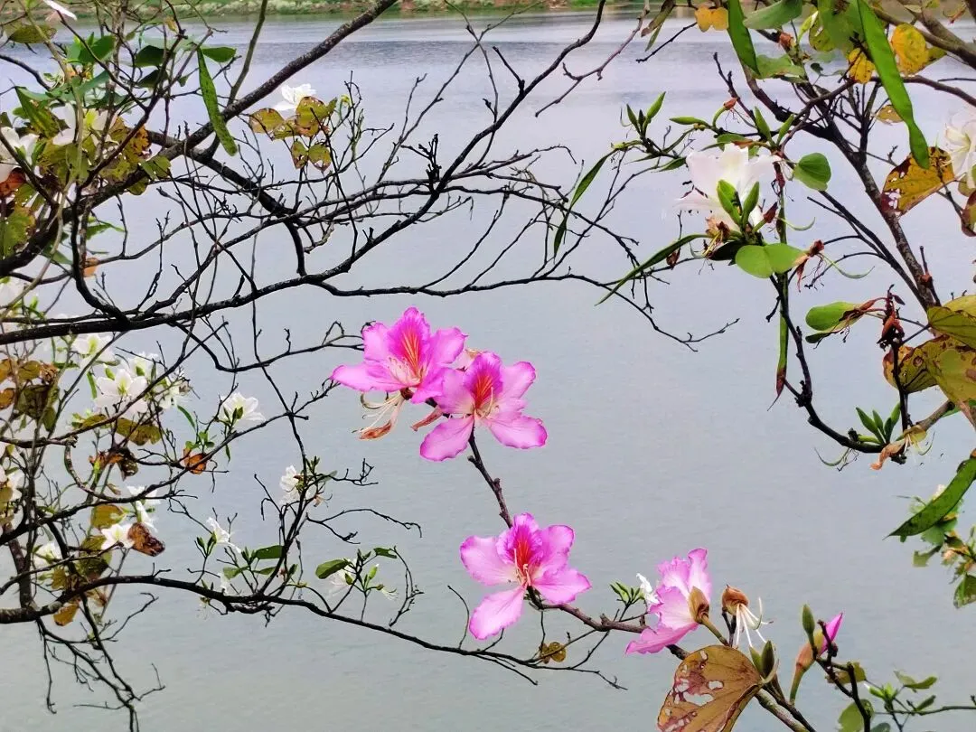 那些紫荆花,粉的、白的,就那样毫无征兆地开了,