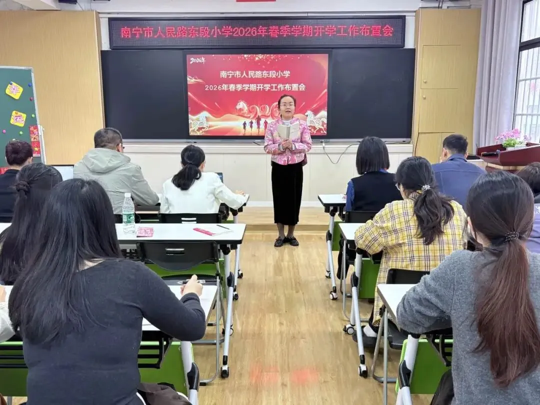 最后,张卫萍校长围绕 “让阳光照进每一个孩子的未来” 工作主线部署2026年学校年度计划,强调以党建筑牢教育根基,深化五育融合培育阳光学子,构建特色课程体系与 “三阶五环” 阳光课堂;锻造高素质教师队伍,以数字赋能建设智慧校园,完善阳光管理、抓实后勤保障,推动学校工作从 “规划蓝图” 向 “内涵落地” 深度转化,勉励全体教职工以匠心守初心,携手打造有温度、有品质的阳光小学。