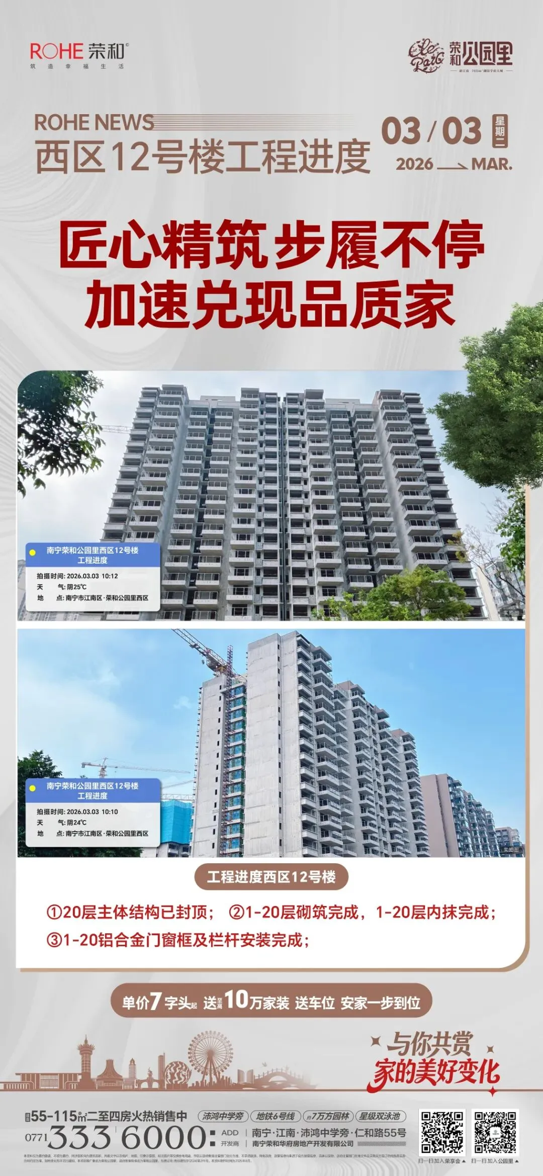 南宁荣和公园里|西区12号楼工程进度播报~