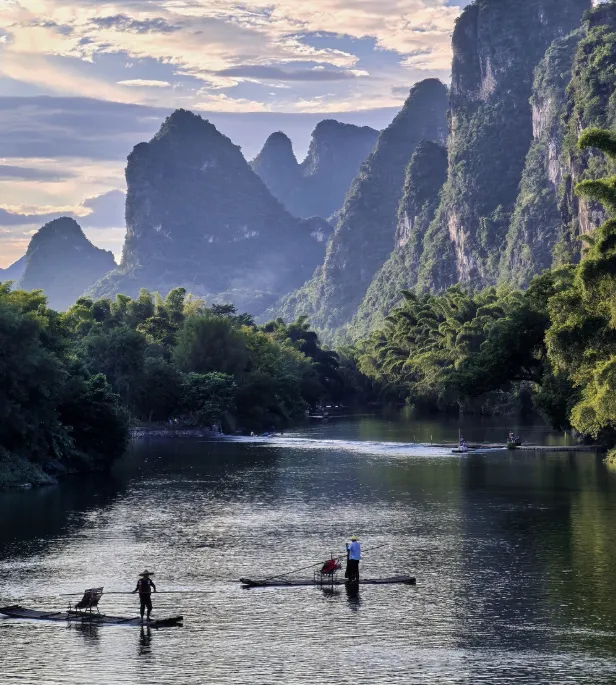在阳朔,最舒服的时刻,莫过于黄昏时分,坐在竹筏上,看一道斜阳慢慢落到山后。江水在脚下流淌,整个人就像那块被水流冲刷了无数遍的鹅卵石,心里的棱角都被磨平了。没有焦虑,没有催促,只有一种从头到脚的松弛感,一切都刚刚好。