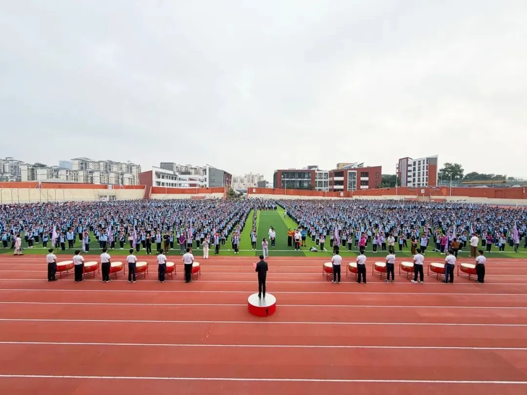 本次开学典礼由校区副校长何海夷老师主持,典礼在何副校长新学期的问候与学生鼓手铿锵有力的击鼓声中拉开了序幕。鼓声阵阵,响彻校园,传递着中华优秀传统文化的回响,也叩击着每一位学子的心扉,承载着新学期的美好期许。