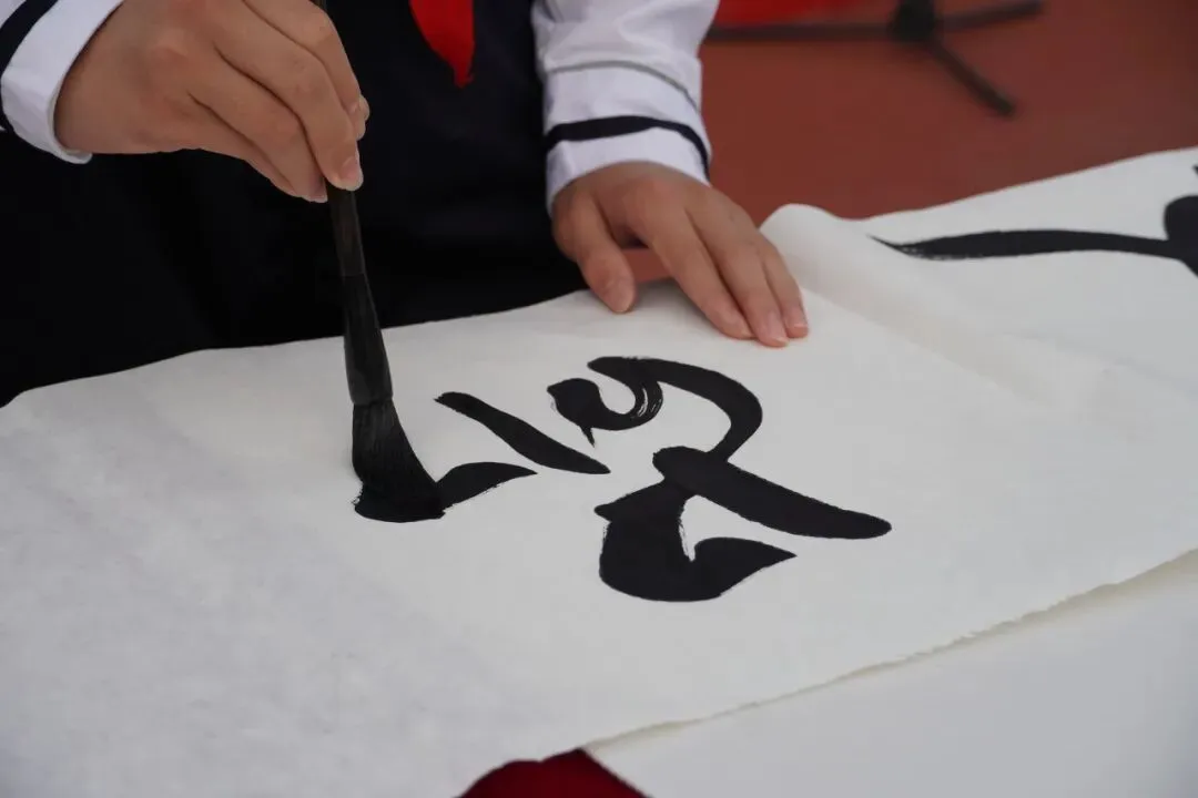 典礼最后,书画社蒲丽曲老师与初一年级余卓阳同学现场挥毫泼墨,“敦品力学”与“真·爱教育”八个大字跃然纸上。笔墨之间,既是对学校文化的深情致敬,也饱含着新学期对每一位学子的成长祝福。