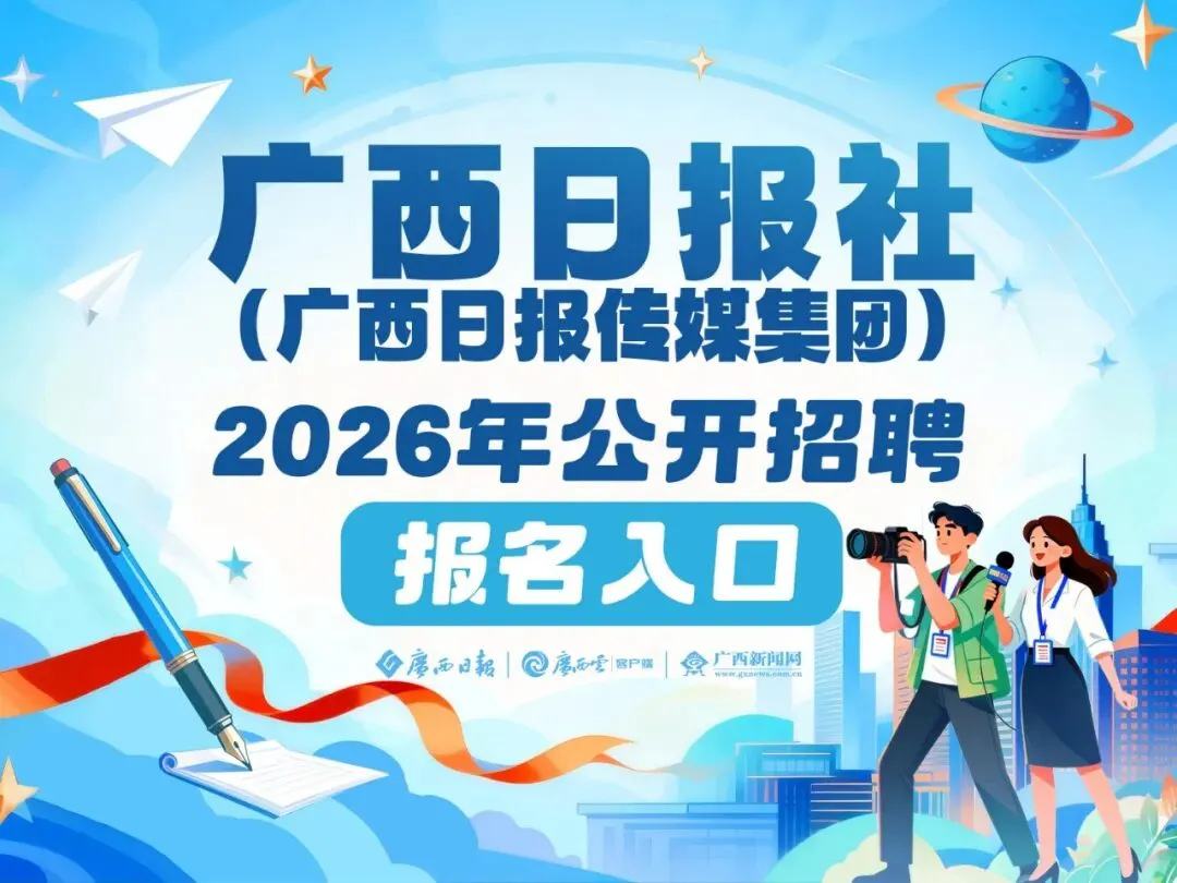 诚邀各路英才加入,共同书写新闻事业新篇章。请点击“广西日报社(广西日报传媒集团)2026年公开招聘”报名入口进行网申,关注广西云客户端、广西日报微信公众号,获取最新招聘信息及后续进展。请保持您的通讯工具畅通,及时留意邮箱和短信入围通知。