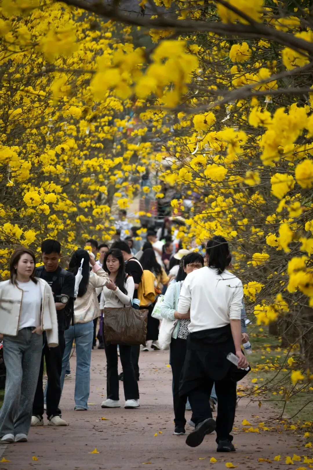 趁着暖风,前来观赏这份美景的游客熙熙攘攘。