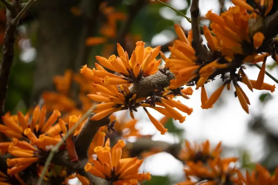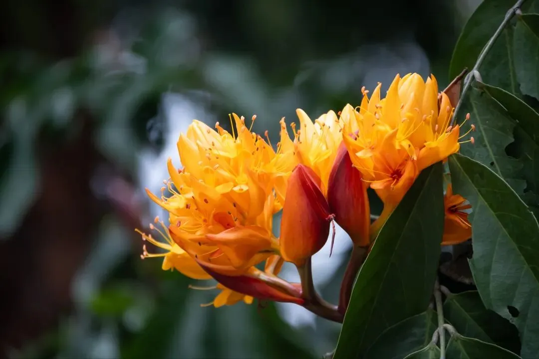 这像炮仗花的花朵娇艳欲滴,远看还真像簪花环。