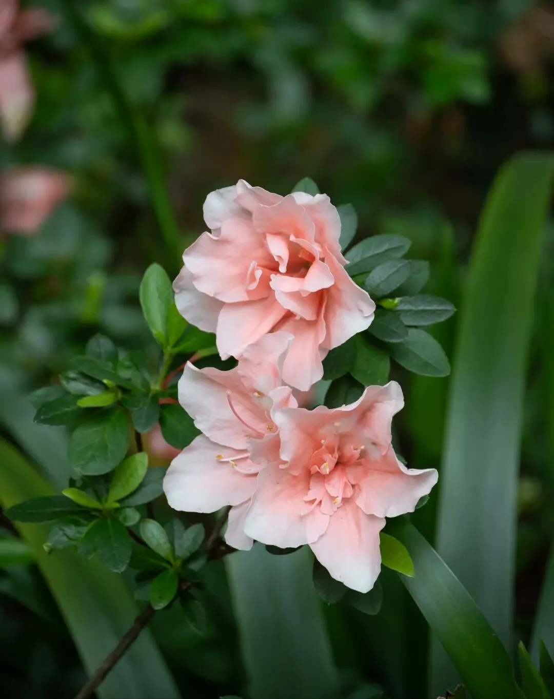 呦,路边的绿丛中吐露着粉粉嫩嫩杜鹃花,娇羞着依偎在绿叶枝头………………