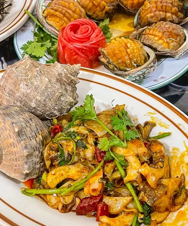 涠洲岛作为火山岛,坐拥丰富海产,海鲜自然是餐桌主角。但这里的吃法不止清蒸白灼,更有创意融合。
