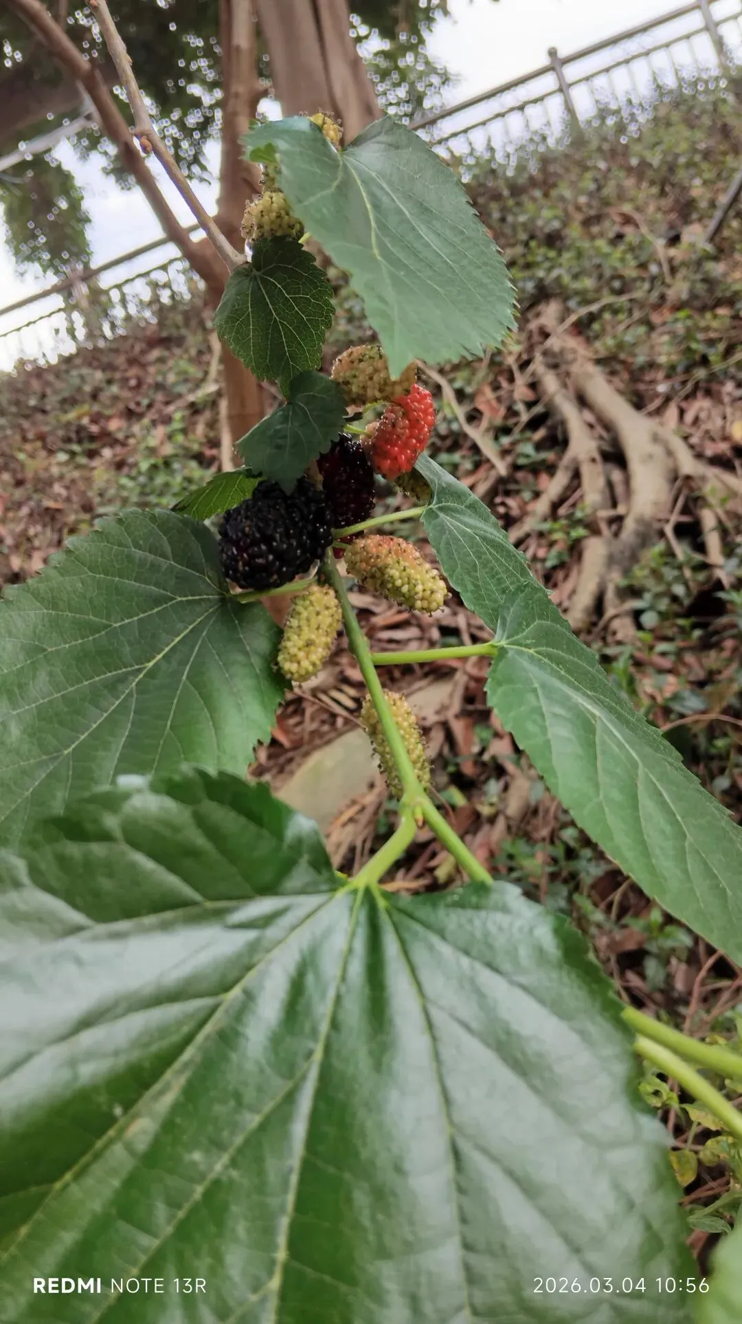 早上在永和桥底器械区锻炼完,顺着江北大道往边阳街逛,打算继续寻找桑葚的身影,果然在江北大道护坡上看到一株桑树,爬上去瞧了会,还被主人吼:你做咩也?不要踩那里!赶紧抬脚,拍下离得最近的桑葚离开,回头看桑葚挂满枝头,估计是平时有施肥吧。