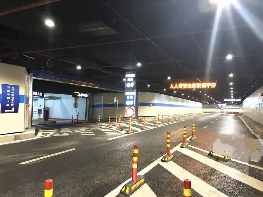 高效的地下车行系统:总长约4.7公里,采用“5进5出”衔接外围干道,创新设计“单向环路系统”减少交通冲突,串联16个地块、约2.4万个停车泊位,实现停车资源共享与高效利用。