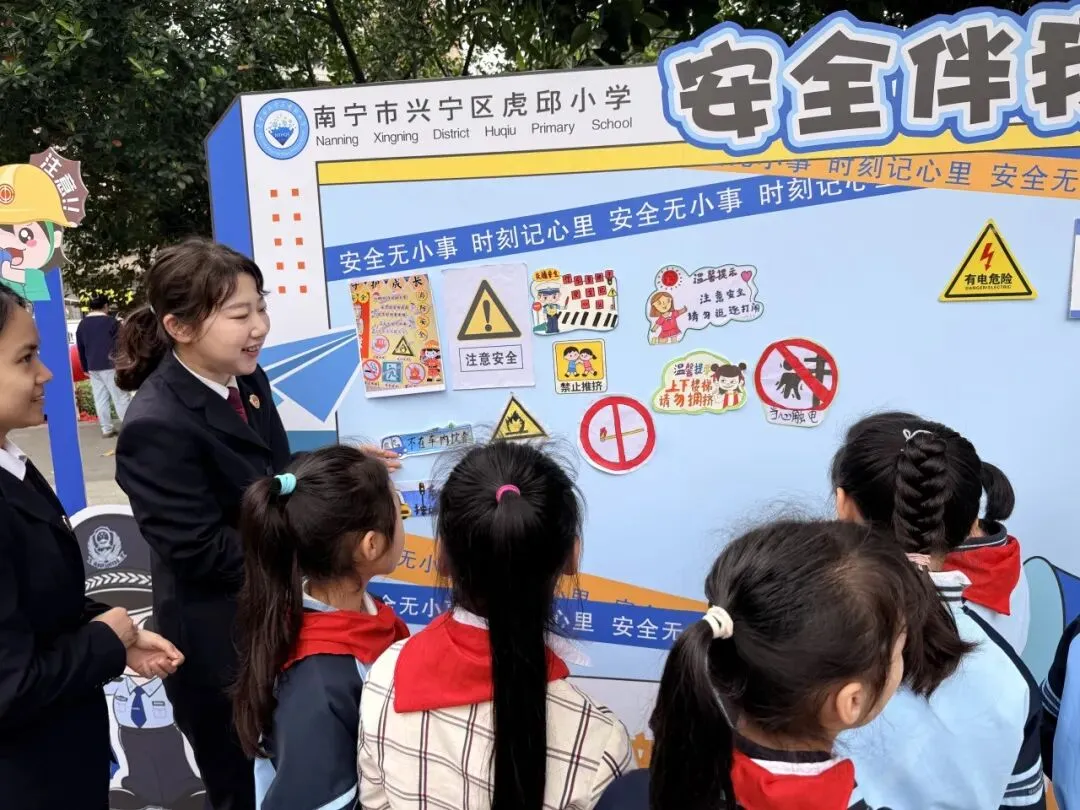 学校特别邀请兴宁区检察院检察官林叶到活动现场开展沉浸式安全课堂,林检察官用通俗易懂的语言讲解校园欺凌、自我保护等知识,让安全知识入脑入心,为同学们的健康成长保驾护航。