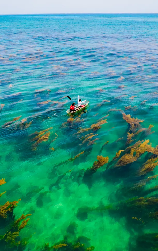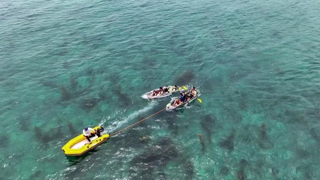北部湾西南浪来临前的涠洲岛海面晶莹剔透,海水能见度高达20~30米,船舶置身海上像悬浮在空中,海水清澈得仿佛不存在。