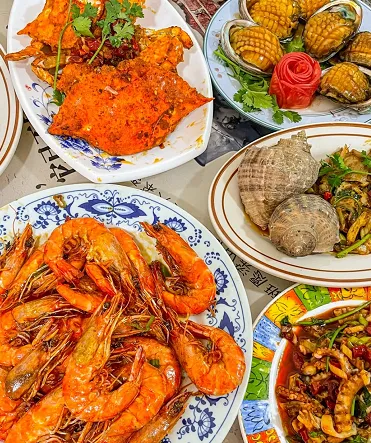 19:00 海鲜加工大排档享用丰盛海鲜宴