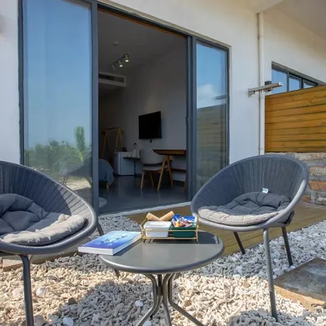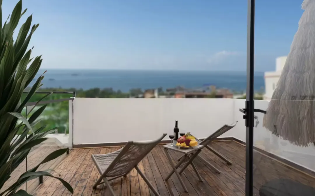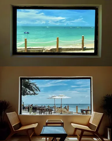 一边欣赏海边的优美景致,一边闻着浓香咖啡,