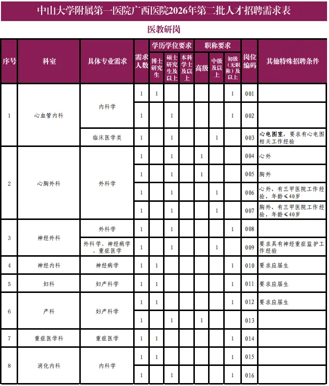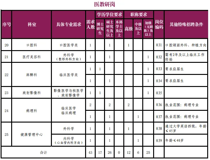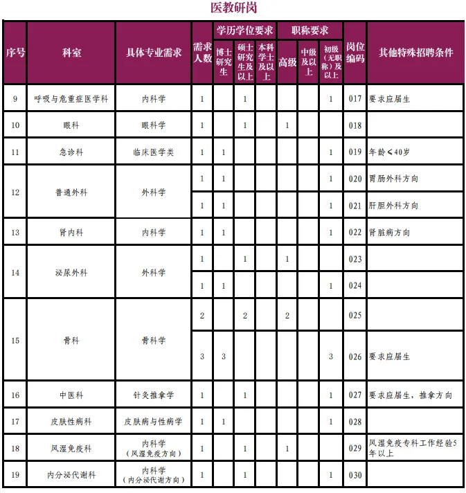 5.如岗位无特殊说明,医教研岗历届应聘人员,要求有公立三甲医院工作经历。