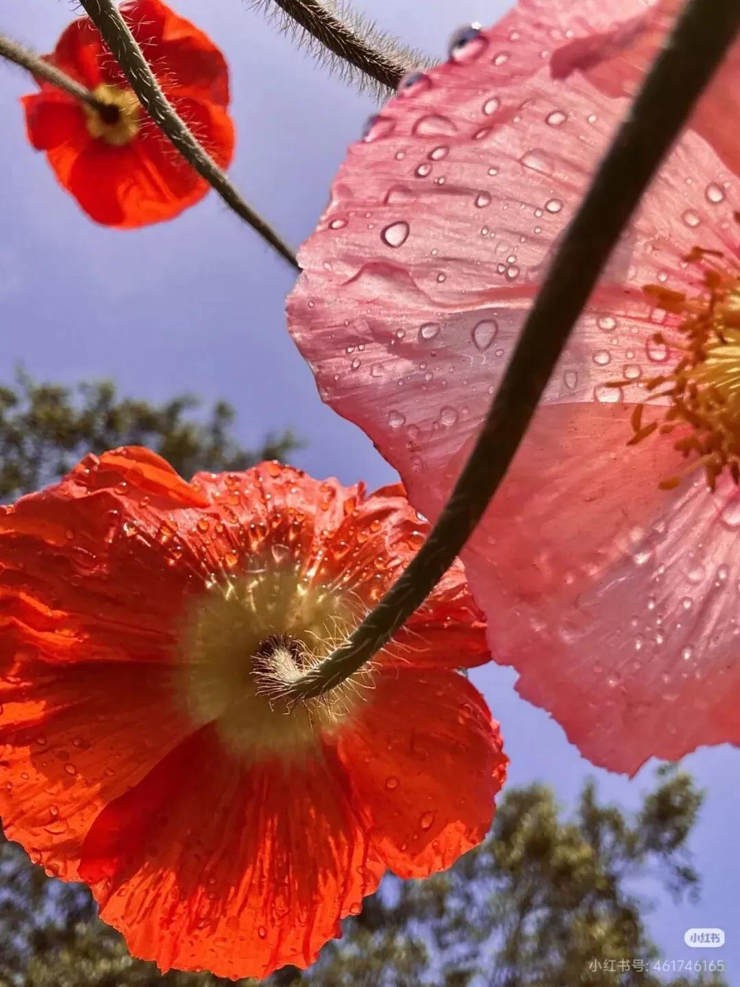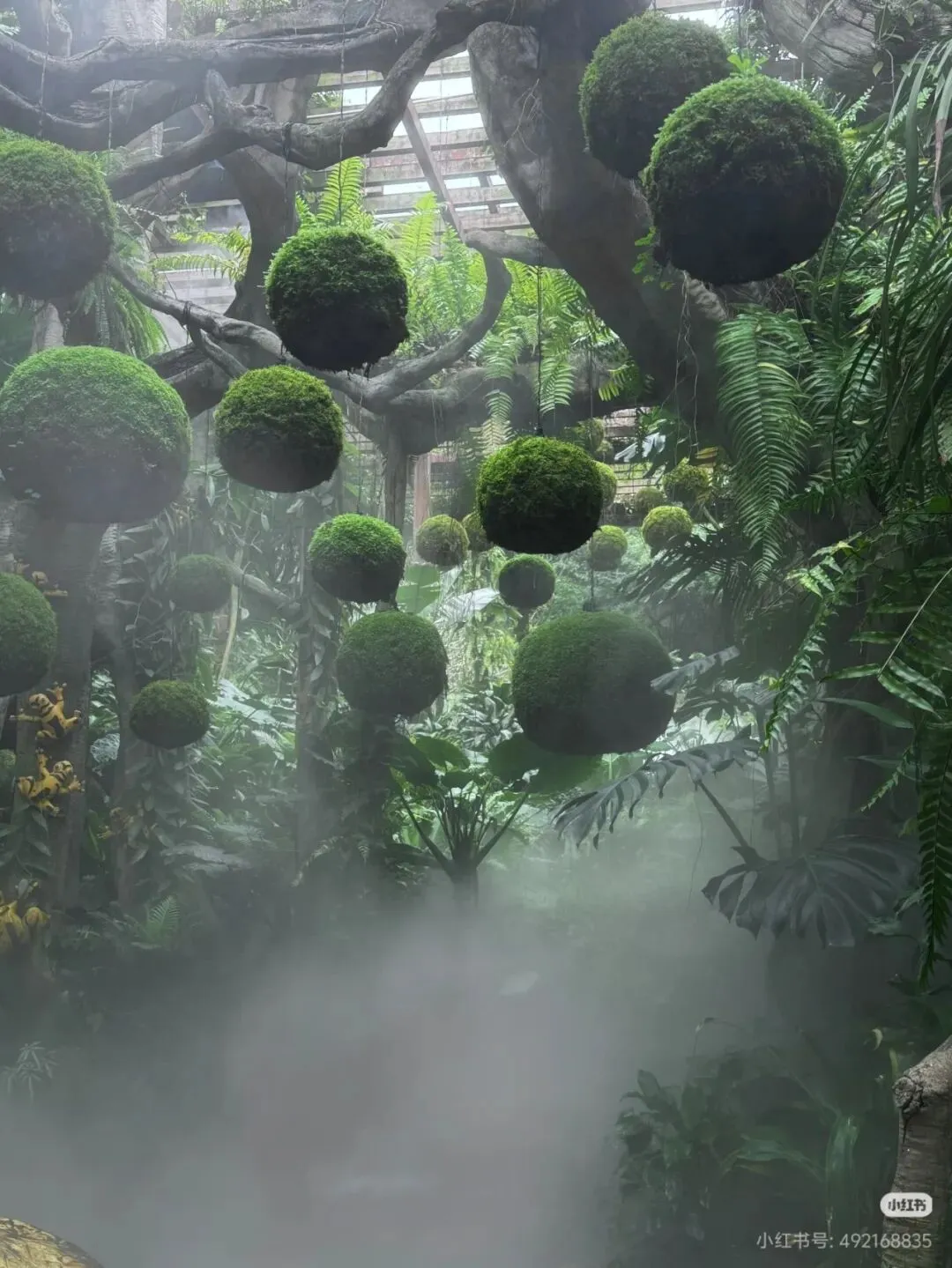 水雾定时起、睡莲浮水面、蓝紫色飞燕草开成海