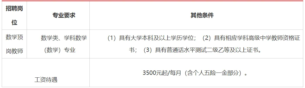 要求本科及以上学历,具有相关学历毕业证、学位证、教师资格证、普通话等级证书,有初中教学经验者优先
